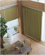 お好きな生地(※)を選んで製作することができます。カーテンのような左右のたまりがなく、生地が上に上がるので窓辺をスッキリと演出します。カーテン生地本来のデザイン性を楽しむだけでなく、お好みで調整可能なレースとのツインシェードもあり、隠したい所まで生地を降ろしたり調整が出来、便利です。