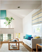 カーテンスタイルでは合わない小窓使いや、片方だけシェードスタイルでカーテンスタイルとの組み合わせも楽しめます。